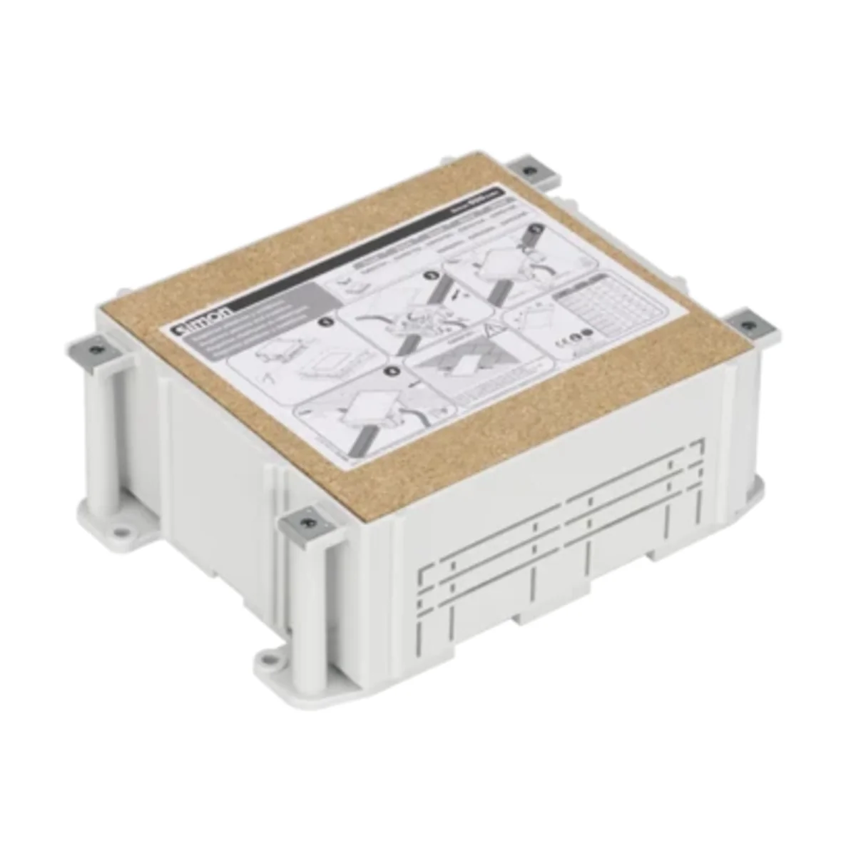 Adjustable plastic cassette for floor box S210 and S270, with holes for screws to fix the housing to the ground and side knockouts for pipe entry - for Simon Connect distribution systems.