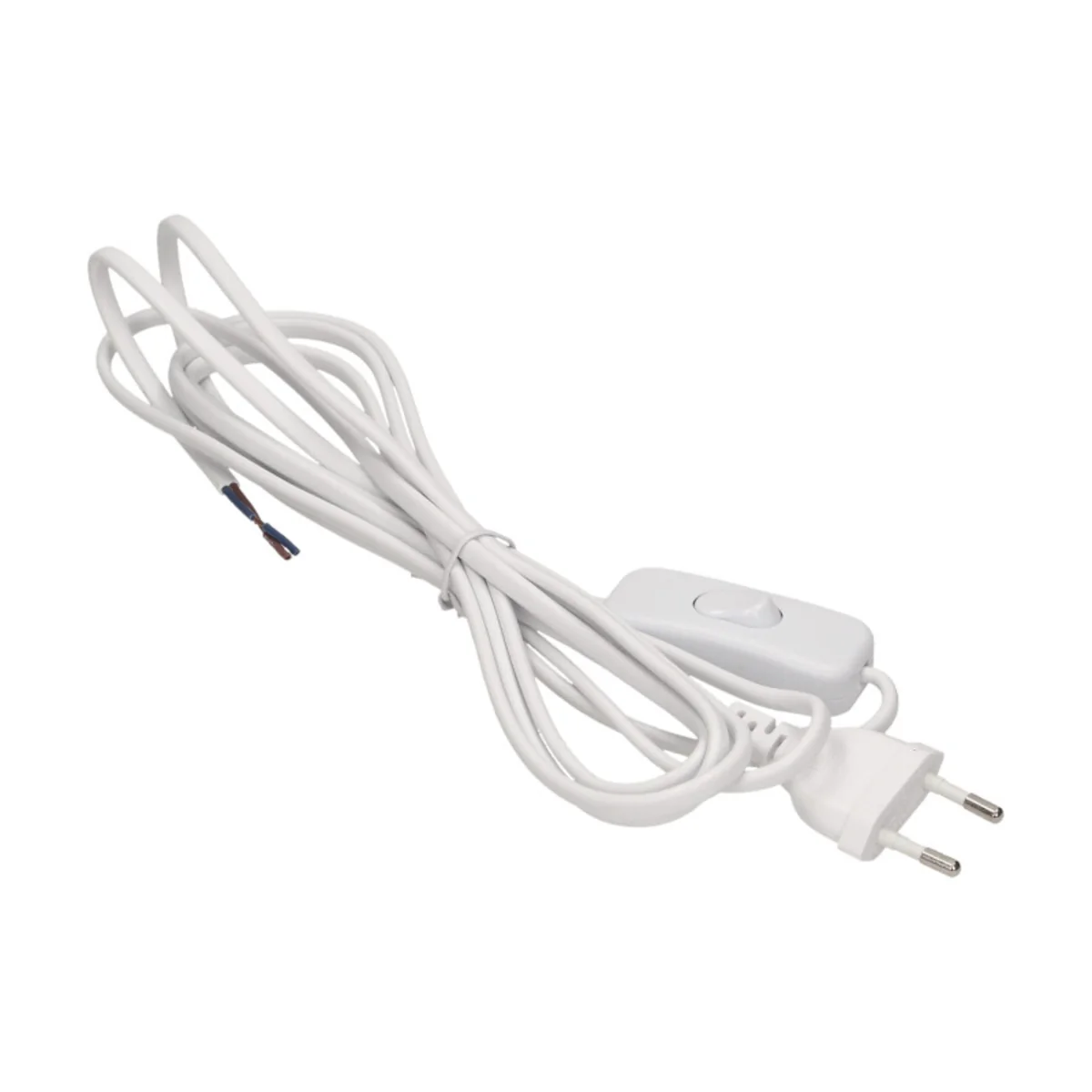 Power cord with on/off switch and flat plug, 3m, white OR-AE-1394/W