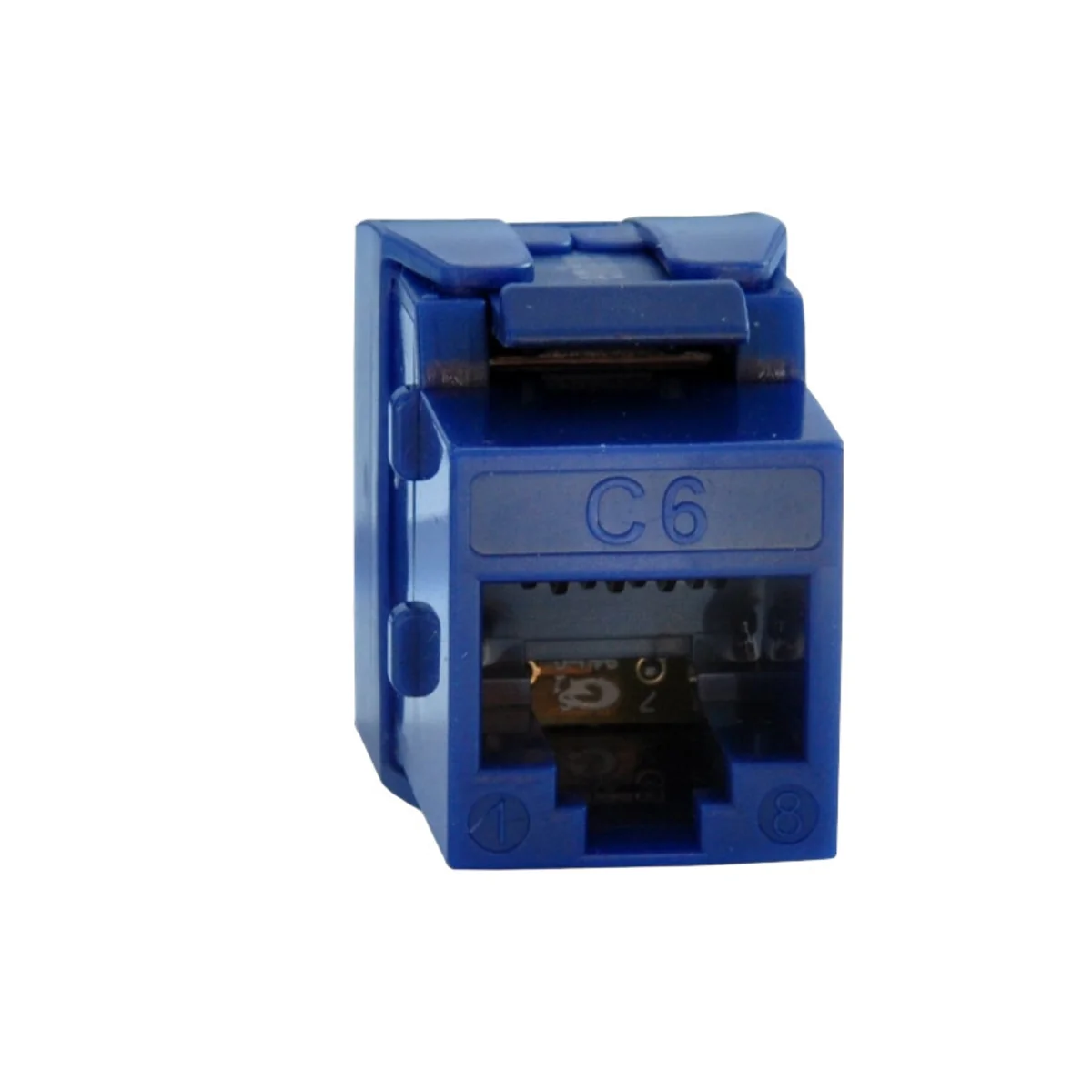 Unshielded socket UTP RJ45 category 6 can be installed in any adapter for keystone connectors, e.g. in adapters for 45x45 sockets, electrical equipment frames, modular panels, thanks to which the list of applications for this socket is very wide. It is a socket with miniaturized dimensions, the so-called “slim”, which makes it possible to use it to build distribution points in modular panels (not equipped). No impact tool is needed to terminate the wire/cable in the socket. The socket has color coded connection sequence type 568A/B.