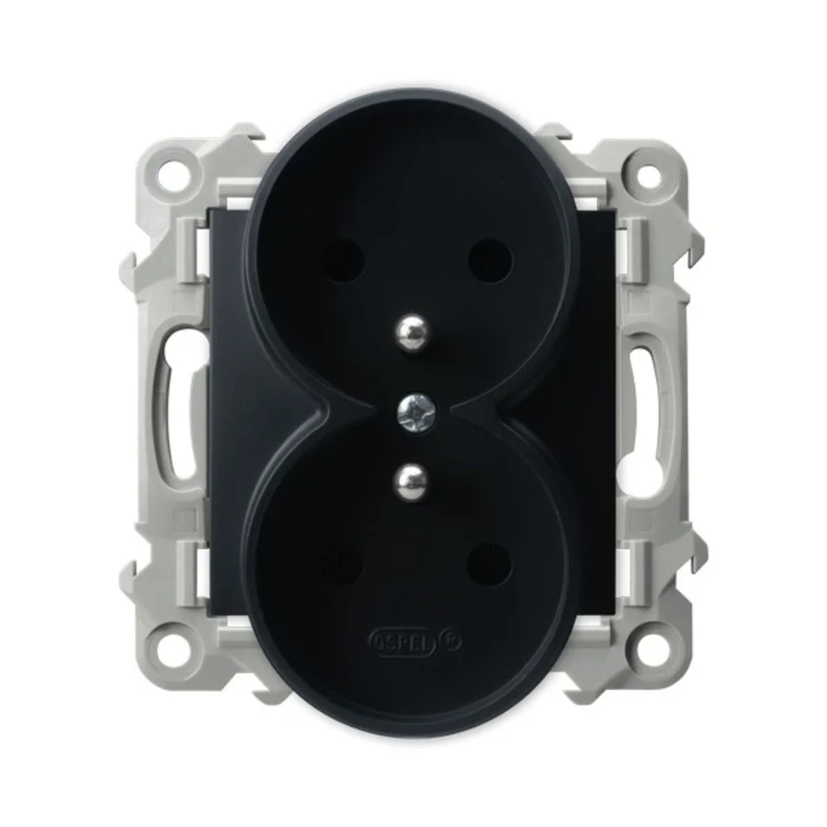 SAPPHIRE Double socket with grounding, module without frame, black metallic GP-2ZRZ/M/33