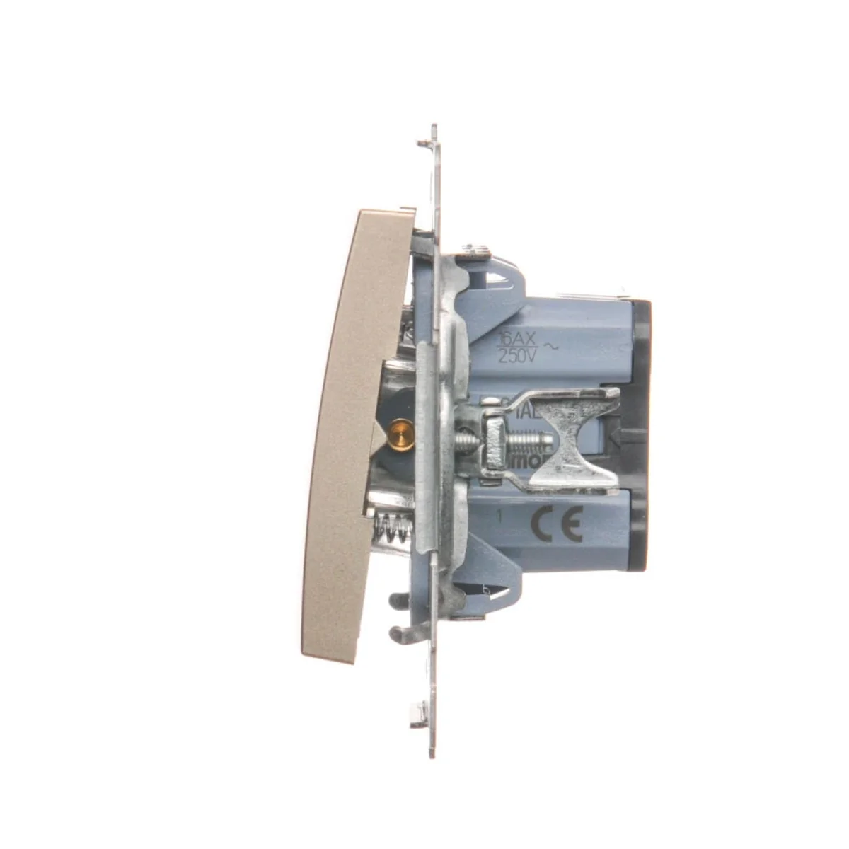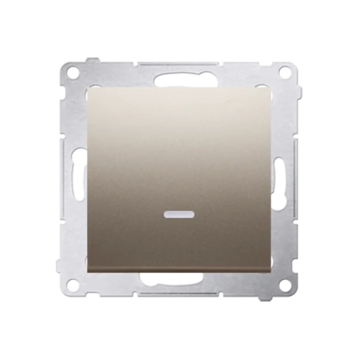 Single push button with backlight, series Simon 54, from the manufacturer Contact Simon. The product's catalog number is DP1AL.01/44. In golden matt, metallic colour.