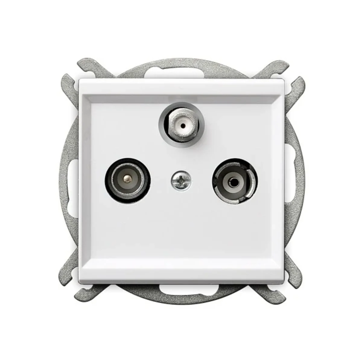 RTV-SAT end socket. It is designed for parallel installation with an independent antenna cable running to each receiver. To be equipped with a frame.