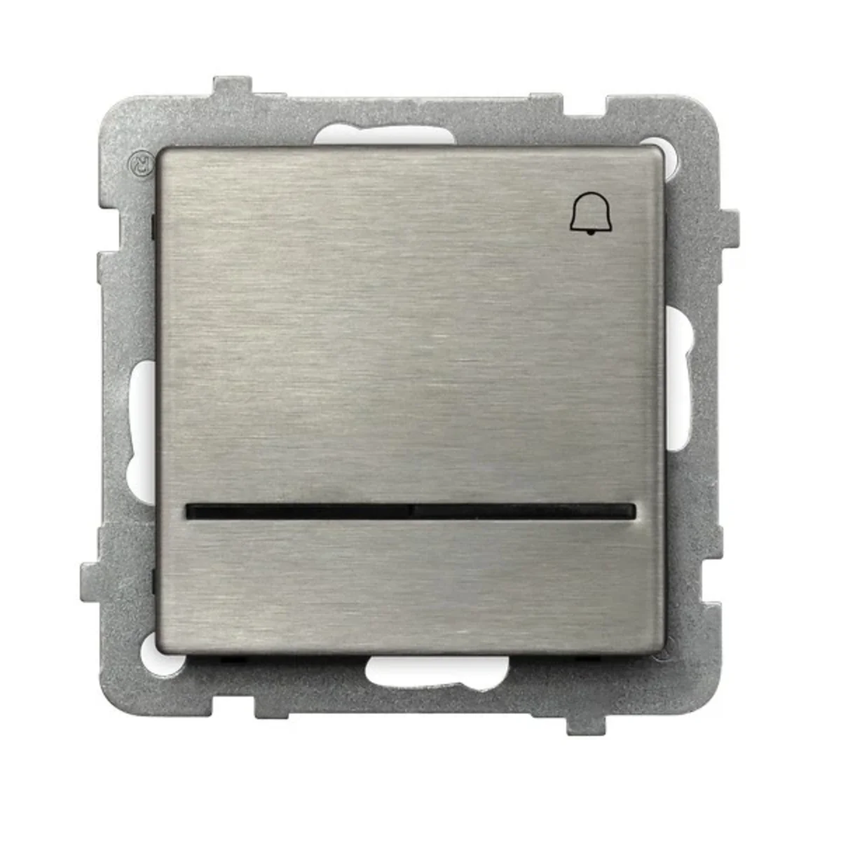 Short-circuit switch "bell" with backlight, from Sonata Steel Inox series, from Ospel.  The product catalog number is ŁP-6RMS/M/37. In stainless steel color.