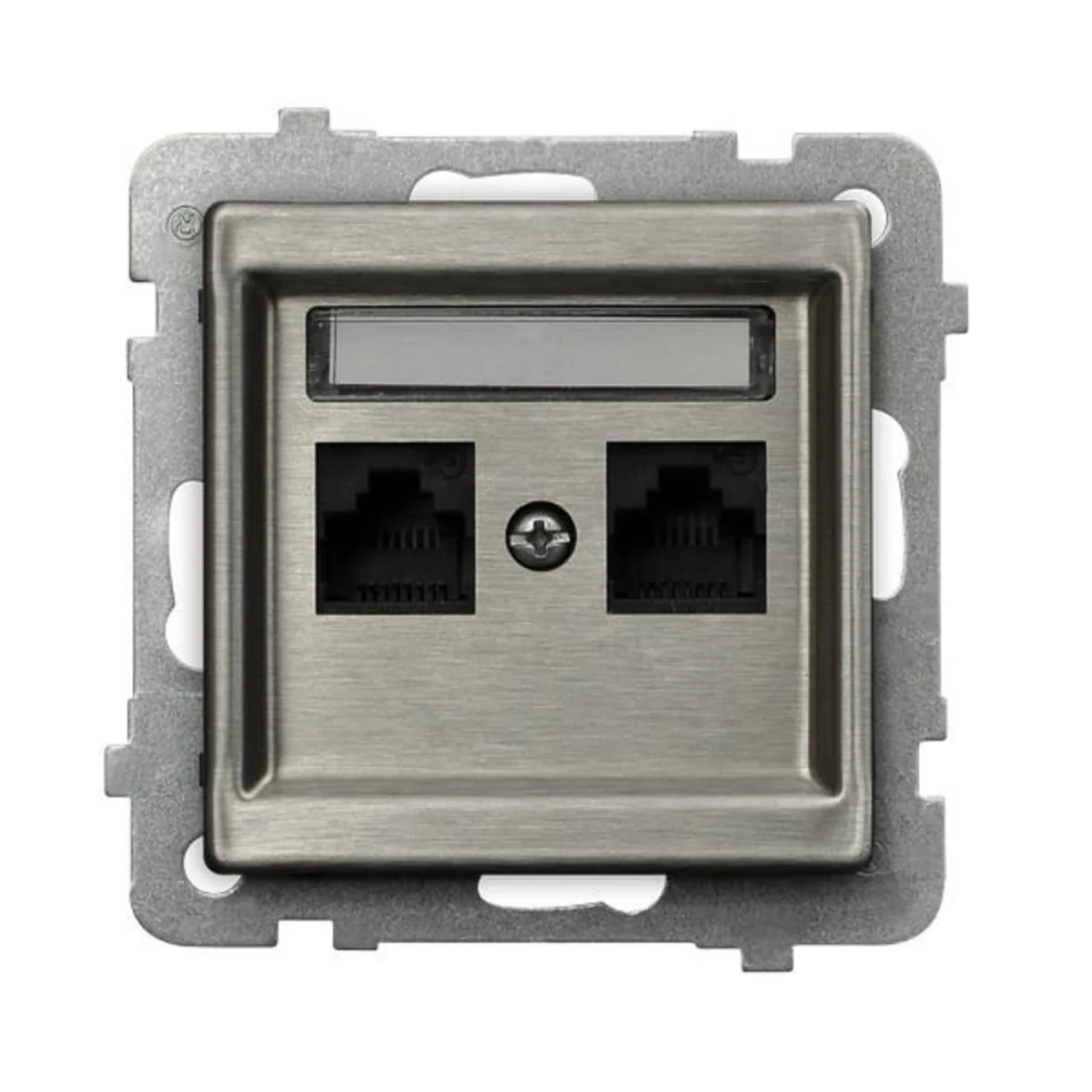 Double RJ-45 computer socket, category 5e MMC , series Sonata Stal Inox. It is used to connect two twisted pair signal cables, unshielded, category 5e. The data transfer rate is 1Gb/s.