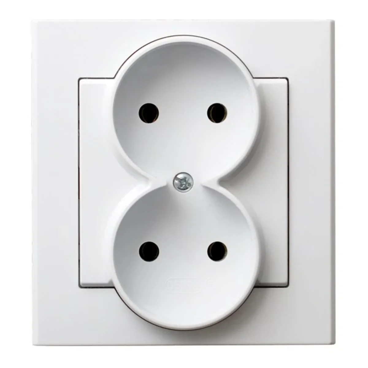 Electrical socketdouble, without earthing, equipped with a frame.