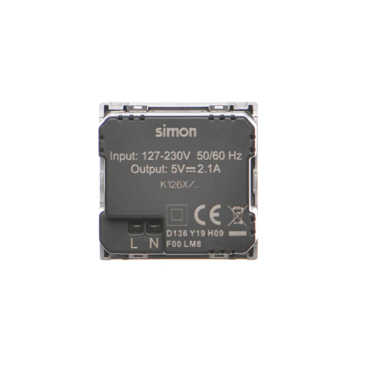 USB charger in standard K45, from the manufacturer Contact Simon. The product part number is K126E/8.
