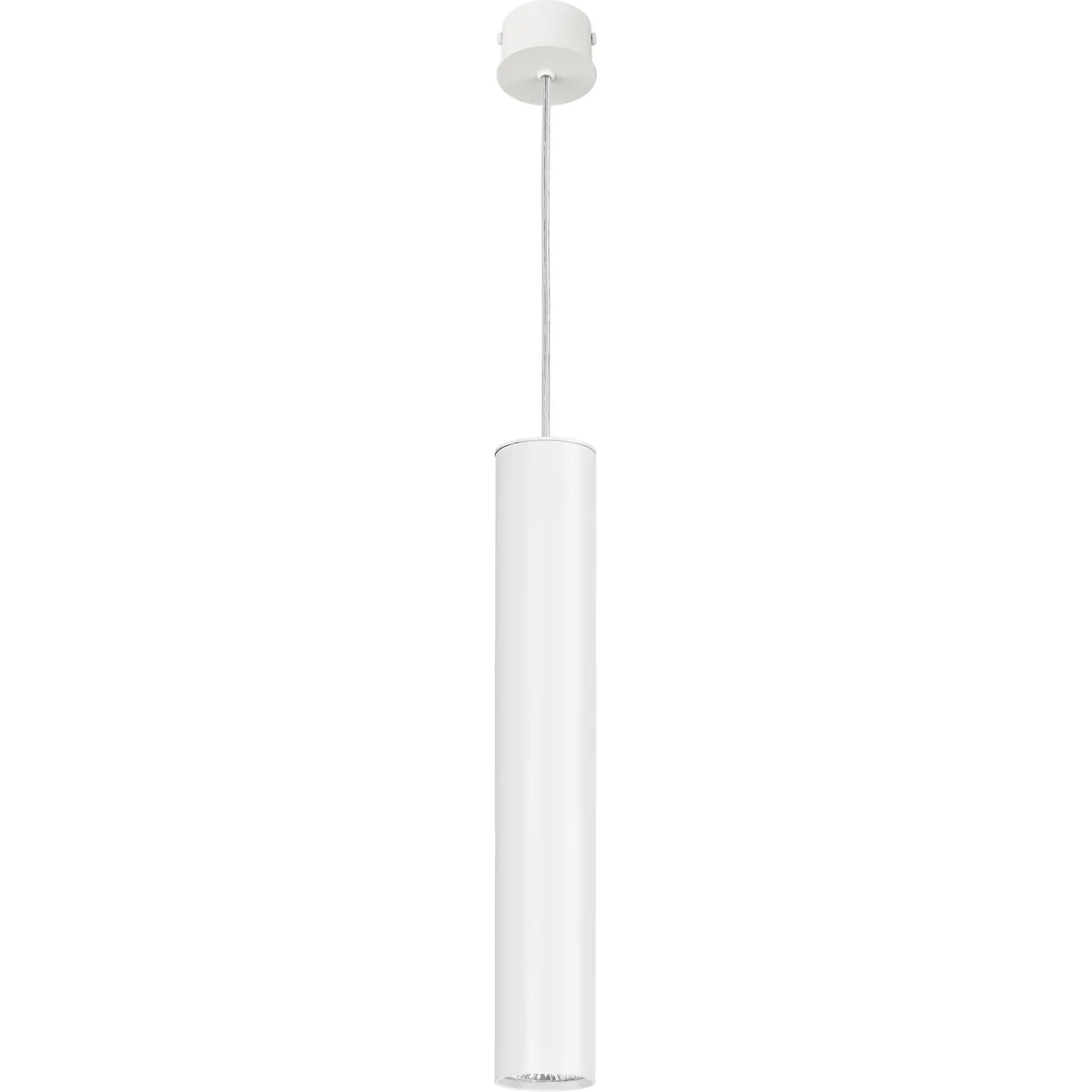 Minimalist hanging lamp EYE L in white. The lamp is made in the form of a tube and is ideal for lighting a table or worktop.