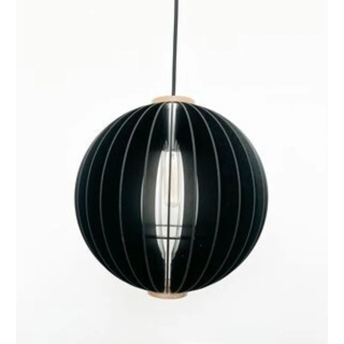 A lampshade made of joined wooden elements in black will be a perfect finish for modern interiors.