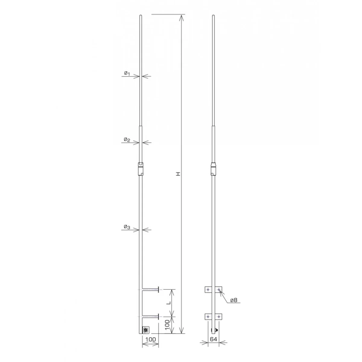 Implementation of lightning protection of chimneys, superstructures and other devices on the roofs of buildings. They have mounting brackets permanently welded into the spiers and a connector for connecting to the ground wire. Diameter 1=10mm, Diameter 2=16mm, Diameter 3=--mm.