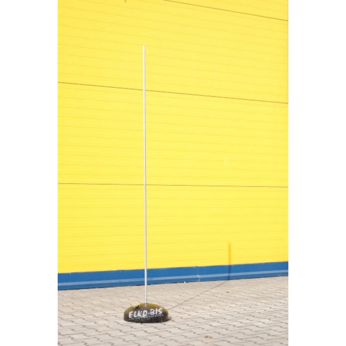 It is used to protect metal roof elements or devices against the effects of discharges. Free-standing mast. Under the concrete base, it is recommended to use the 94308222 washer for roofs covered with roofing felt or 94308221 for roofs covered with a membrane. The cross clamp for connecting the wire is sold as a set. The mast is made of aluminum or copper, and the stabilizer is made of stainless steel.