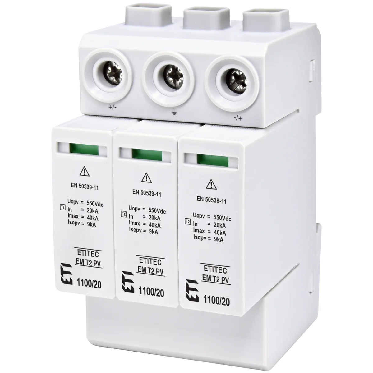 Surge arrester T2 PV 1100/20 Y from the manufacturer ETI POLAM. The product catalog number is 002440623.