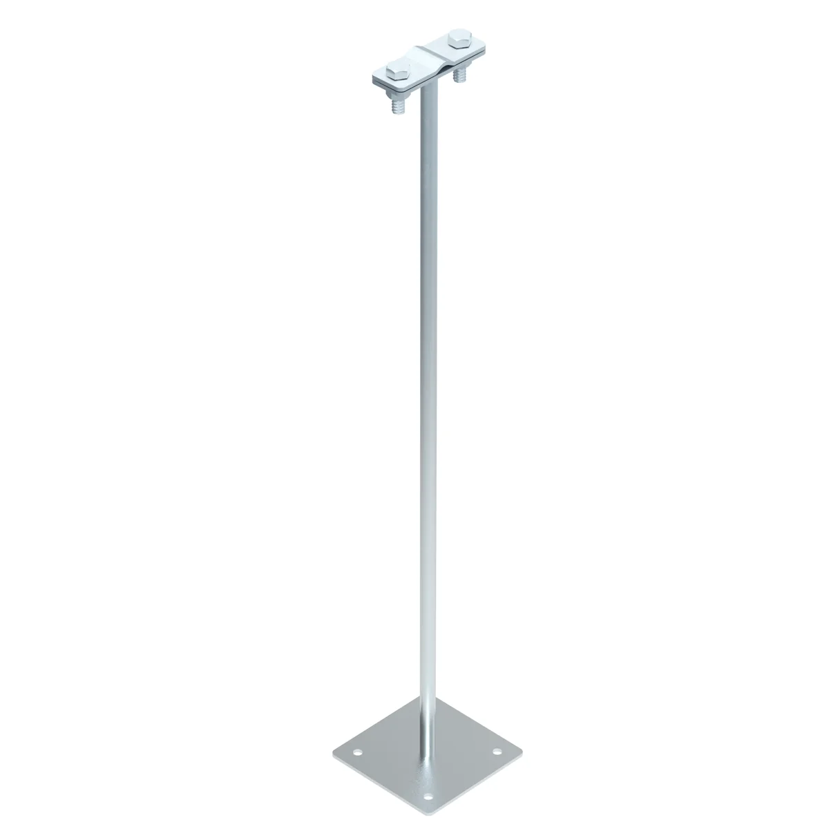 It is used to guide the ground wire on flat roofs. Fixed to the ground with screws or nails. The support part made of a bar ensures adequate rigidity and strength. In the L-400 and L-600 versions, they are used on flammable roofs.