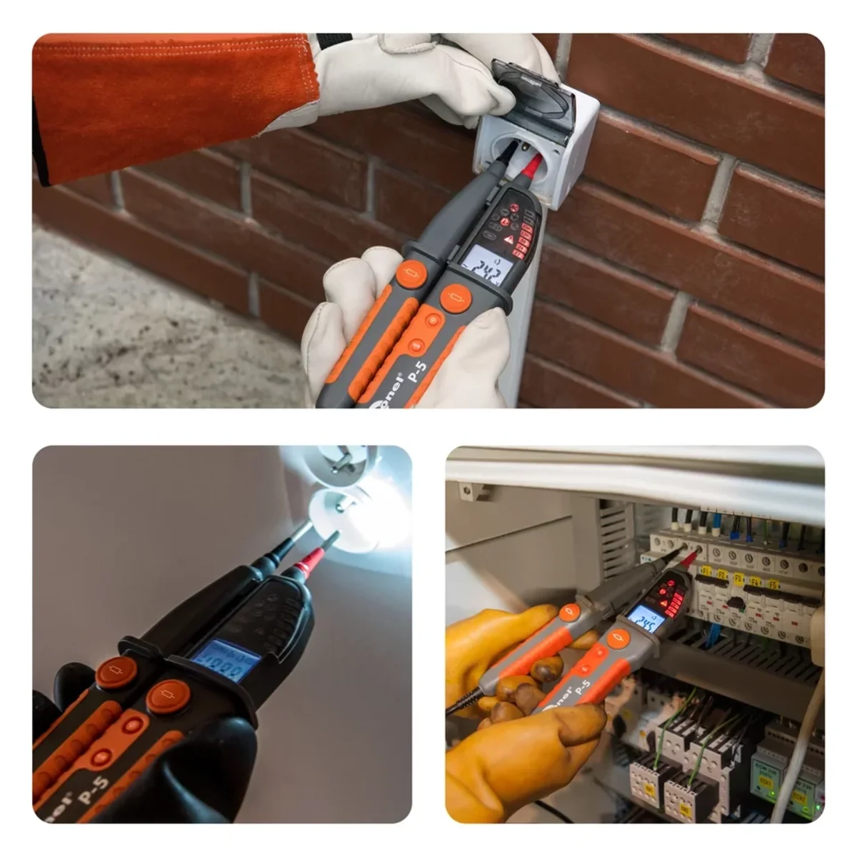 In response to the needs of clients, our new P-line voltage testers allow to check the RCD in a fully controllable way. With buttons on both probes, the user can reduce the internal impedance of the instrument, which makes it possible to trip the RCD. Additionally, pressing both buttons activates an additional loadpoint - a vibration motor. In this way, voltage can be measured in a tested circuit with no impact of stray currents on the result.