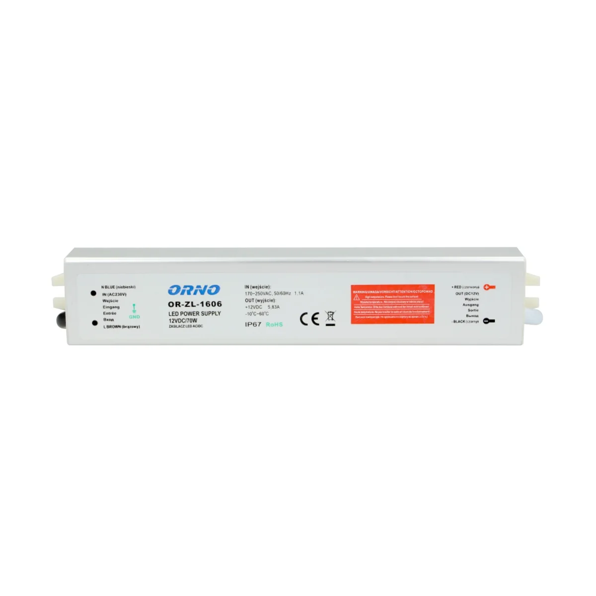 It is designed for LED lighting (e.g. single diodes, LED strips, strips, etc.). It is characterized by a constant output voltage (independent of the permissible load). It has the following protections: