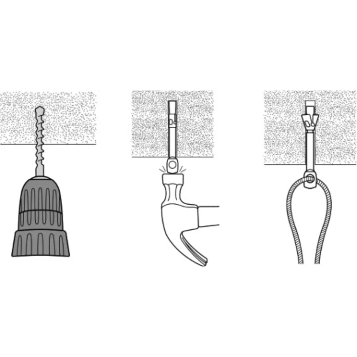 Eye anchor for fixing the structure, suspending cable routes to the concrete base.
