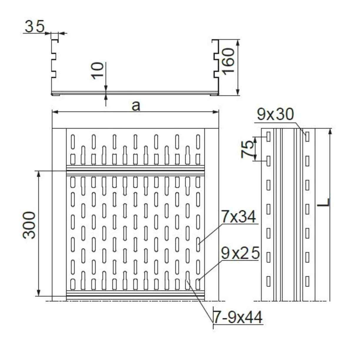 Tray for routing cable routes in halls or places with a limited number of supporting structures. The high strength of the troughs allows the use of supports even every 10 m.