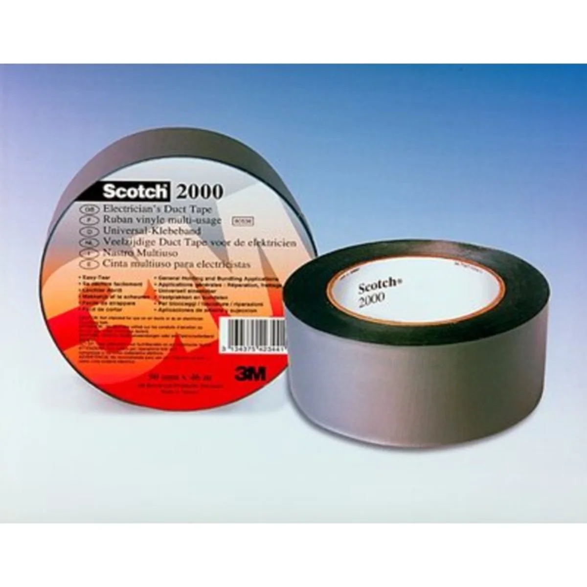 3M™ 'Scotch 2000 PVC electrical insulating tape 51mmx 46m. Suitable for securing, sealing, packing, fixing and reinforcing, as well as masking various surfaces. It does not transvert the adhesive, so it can can be used for temporary fixing, it can also be used in ventilation, air conditioning, heating and refrigeration to connect and seal pipes and ducts made of metal and plastic and to connect and fasten typical thermal insulation materials