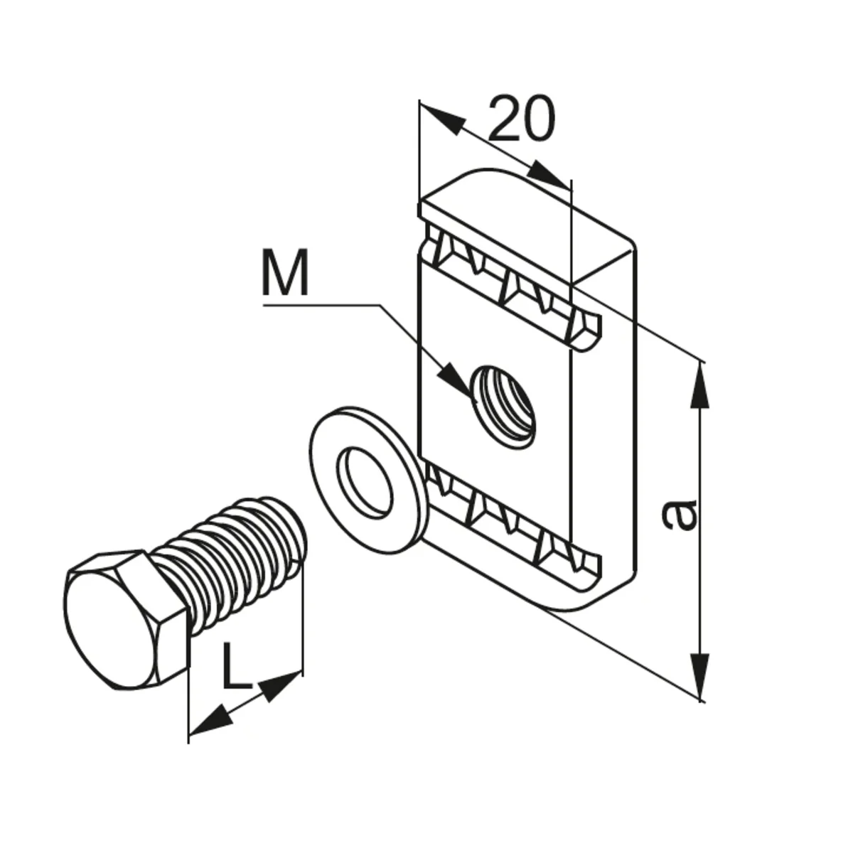 SRM8x25F Screw (set) for fixing system elements to the open side of reinforced and assembly channels.