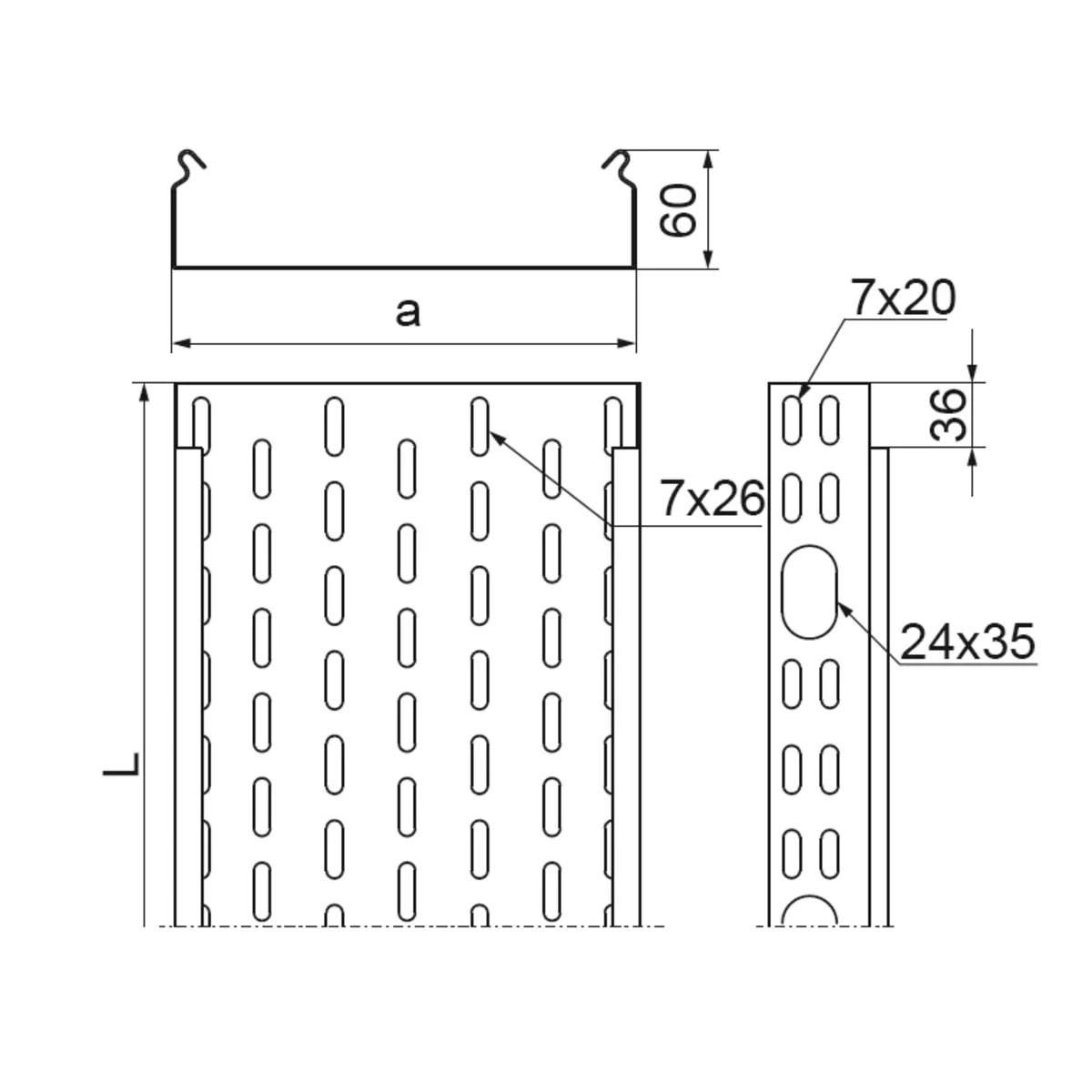 The possibility of connecting the trays by sliding one into the other and assembly without connectors. For a large order, a cable tray with a length of 2 m. For assembly, use screw sets SGK M6x12 or SG M6x12