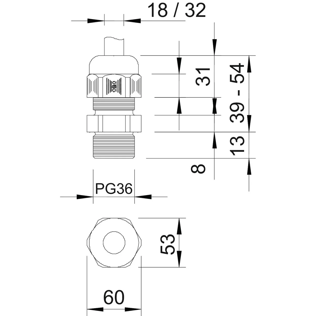 Robust cable gland with PG thread to DIN 40430 in cap nut design with large sealing area, strain relief and twist lock for high tightness. Chloroprene/nitrile rubber sealing ring, injected sealing ribs, no thread sealing ring required, VDE 0619 approved, IP68 rated at 5 bar/1h.