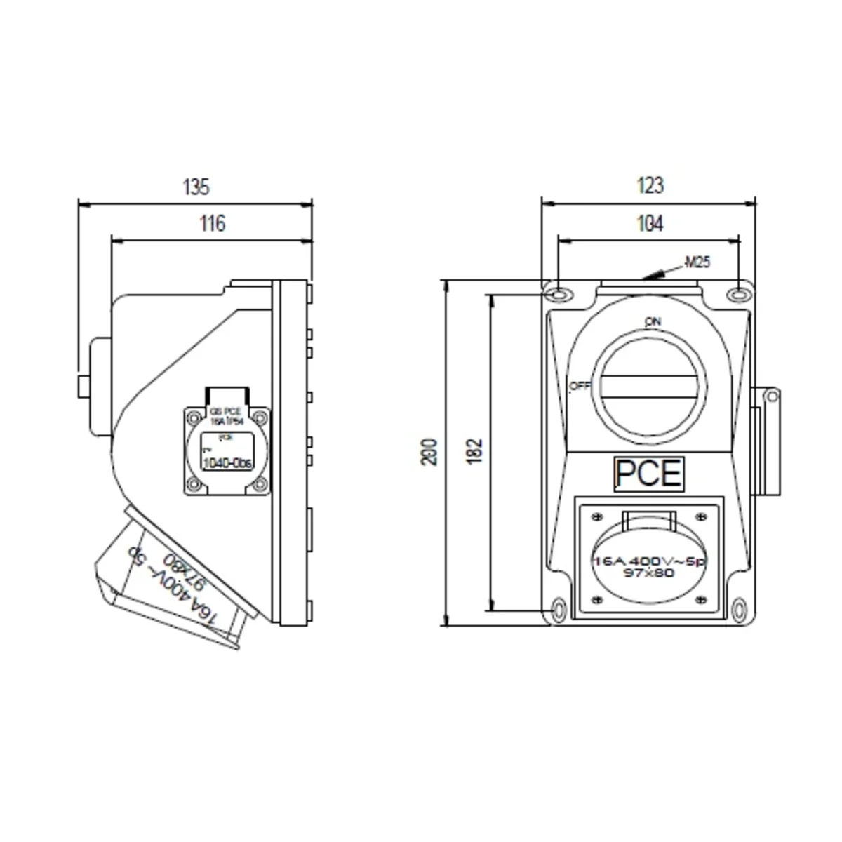 COMBO-POL fixed socket with pin 16A 5P+2P+E (0-1) IP44 96061541W