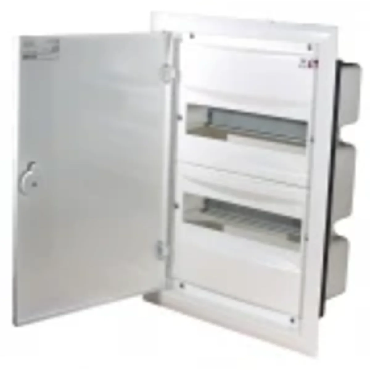 Application - Flush-mounted switchgears are used in residential and industrial construction for the assembly of modular apparatus in order to ensure the appropriate degree of apparatus protection. The switchgear with a lock and a key prevents unauthorized access