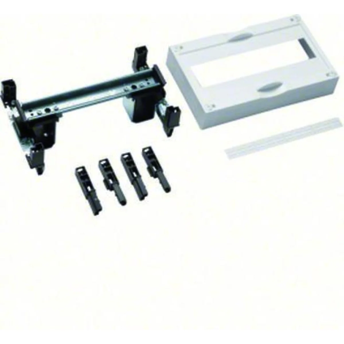 Sub-assembly with cover with cut-out, with TS35 horizontal mounting rails, for modular apparatus