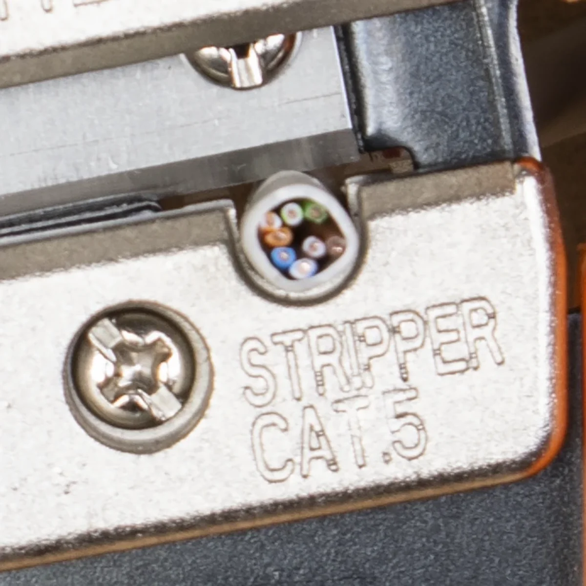 Stripping insulation and cutting wires thanks to dedicated zones enabling processing of category 5 cables, 5e and 6 and thin wires