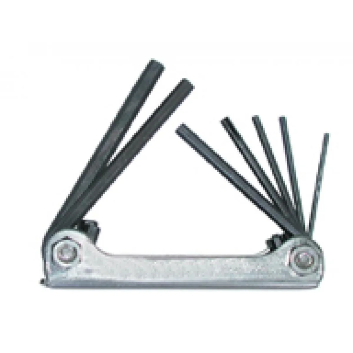 Chrome vanadium steel hex key set, (59 Cr-Mo-V 4), hardness according to DIN 911, folding into the handle, nickel-plated handle, blackened wrench ..