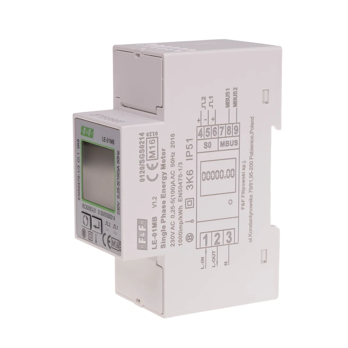 Contador de consumo de energía activa y reactiva monofásico, M-BUS, 100(5)A; MEDIO LE-01MB