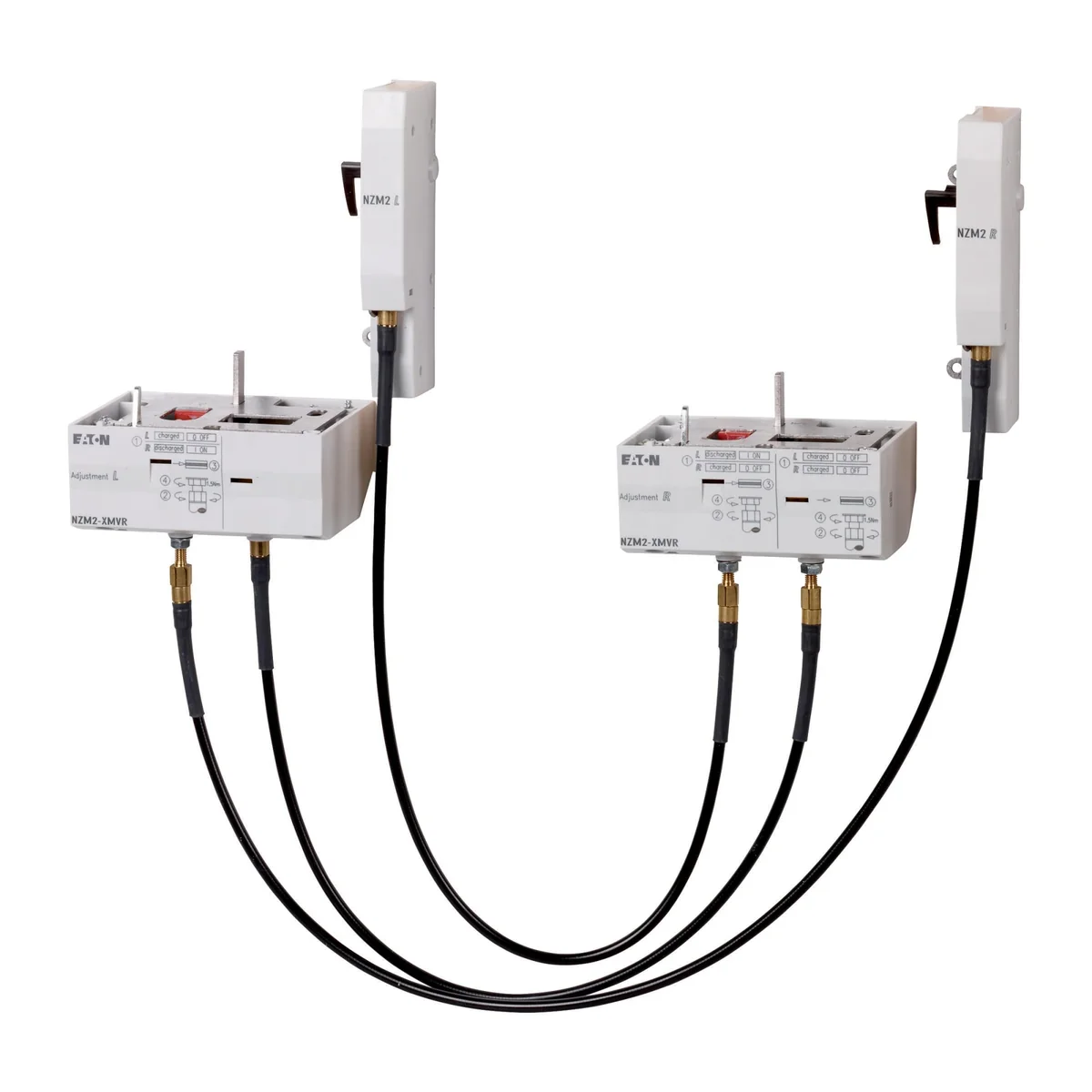 Los accesorios opcionales para la serie NZM de disyuntores incluyen una amplia gama de dispositivos adecuados para uso internacional. El montaje es flexible y sencillo gracias a los grupos funcionales modulares. Consejos: Hasta 2 interruptores del mismo tamaño o similar. Instalación de lado a lado. El tipo incluye piezas para 2 interruptores. Además, se requieren unidades remotas. No se puede combinar con manijas, manijas de conexión de puertas e interruptores auxiliares principales, ni con el operador remoto conmutable NZM2-XRD. Aplicable a: NZM3(-4), N(S)3(-4), +NZM4(-4), N(S)4(-4)