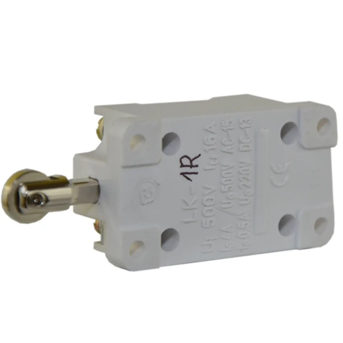 Final de carrera LK-1R sin carcasa. Final de carrera NC/NO con empujador y rodillo paralelo al plano de montaje.