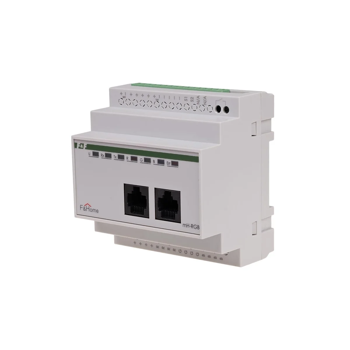 El módulo RGB está diseñado para controlar fuentes de luz LED de bajo voltaje (12 V) configurando el brillo y el color de la iluminación. Se deben conectar fuentes RGB multicolores (p. ej. tiras, mangueras RGB) al módulo y se debe ajustar el brillo y el color de la luz.