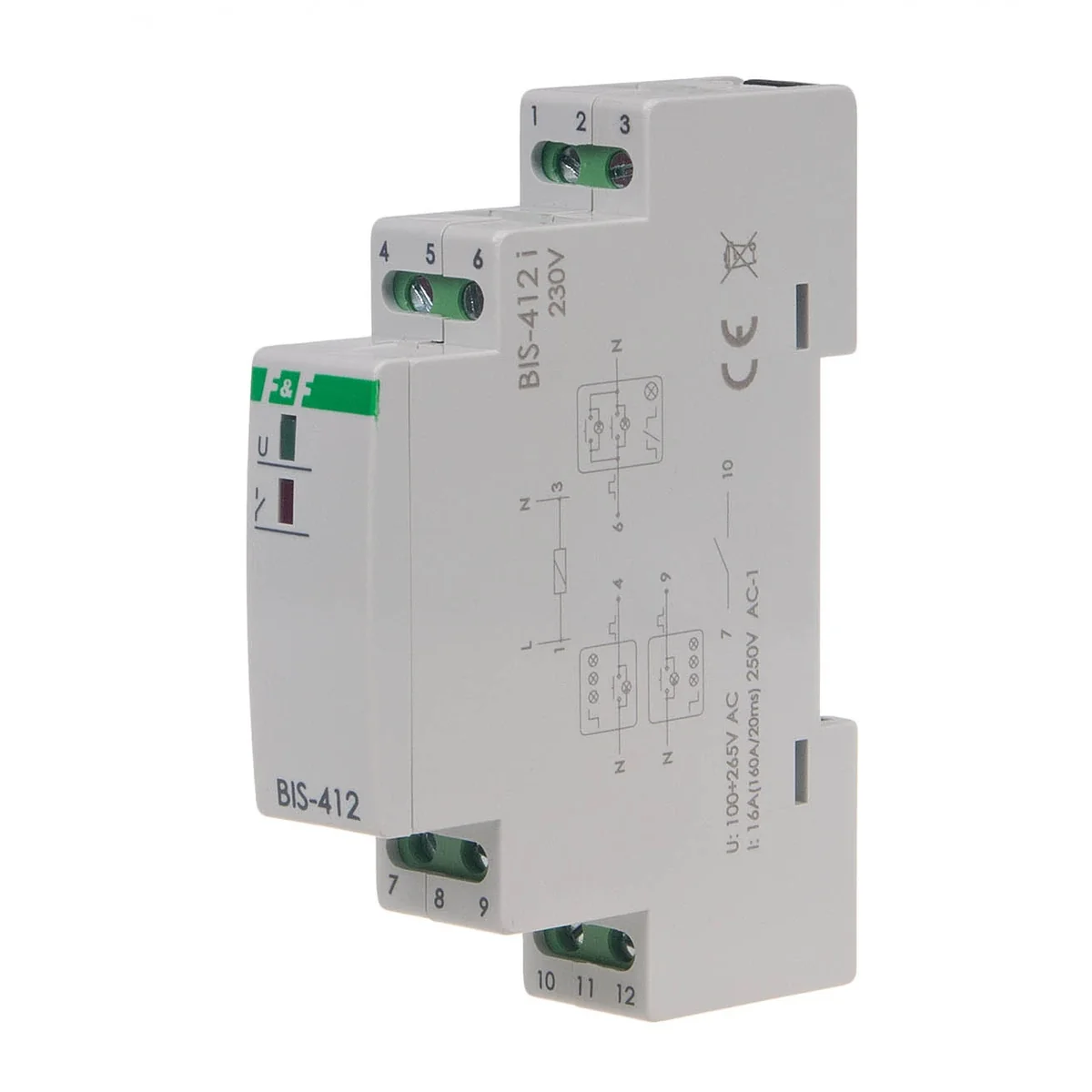 Los relés de impulso biestables electrónicos permiten encender o apagar la iluminación u otros dispositivos desde varios puntos diferentes mediante interruptores de control momentáneos (campana) conectados en paralelo. El receptor se enciende después de un impulso de corriente causado al presionar cualquier botón momentáneo (campana) conectado al relé. Después del siguiente pulso, el receptor se apagará. El relé no tiene "memoria" de la posición del contacto, es decir, en caso de un corte de energía y su regreso, el contacto del relé se pondrá en estado apagado. Esto evita el encendido automático de los receptores controlados sin supervisión después de un corte de energía prolongado.
