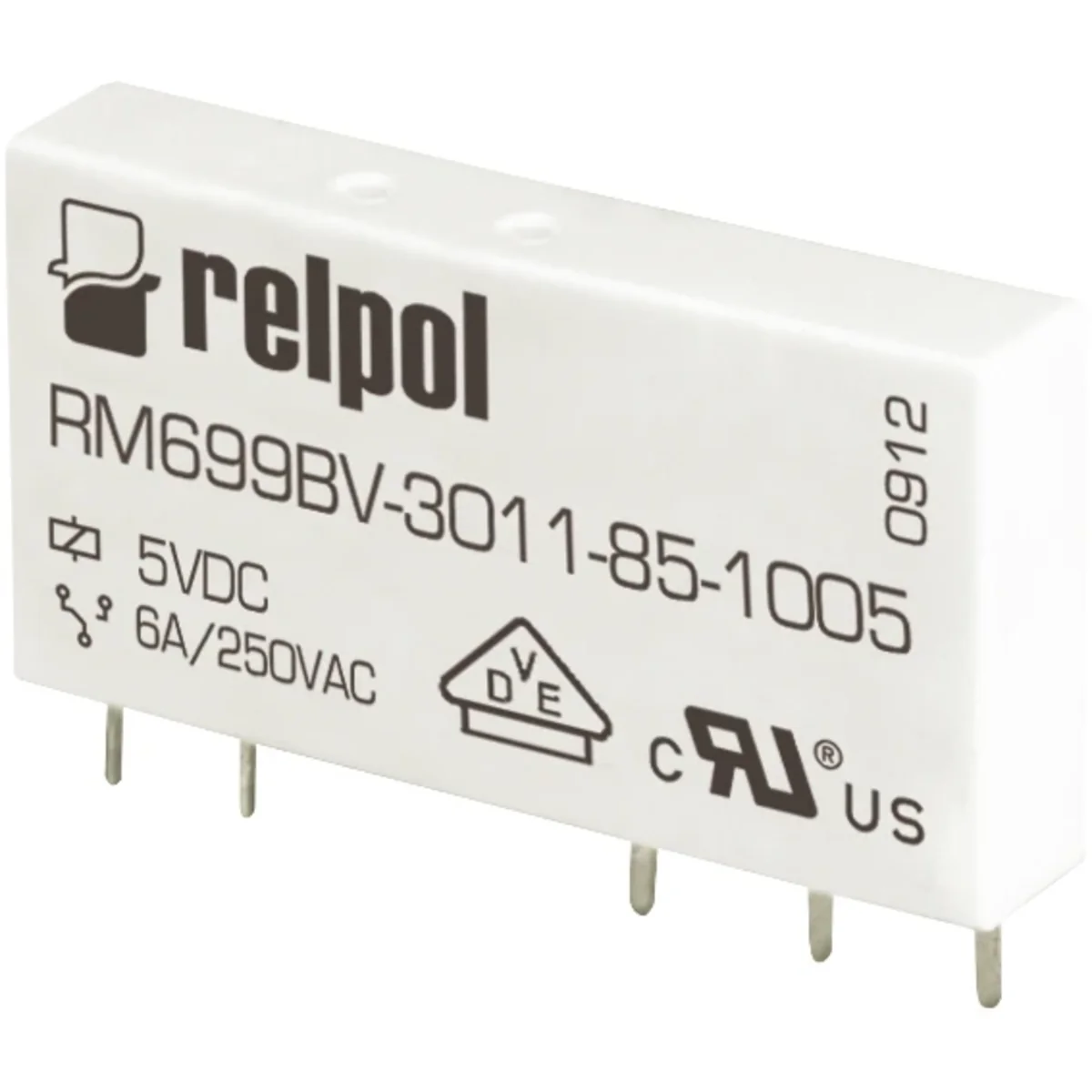 Relé electromagnético, miniatura, versión horizontal, para circuito impreso. Altura 5 mm. Salida: 1P - un contacto conmutado, contactos chapados en oro - pines: 11-12-14; AC1 - 50 mA / 30 V; DC1 - 50 mA / 36 V. Entrada / bobina - pines: A1 - A2, tensión de alimentación Un - 24 V DC. Dimensiones: 15 x 28 x 5 mm. Montaje directo sobre la impresión, PCB. IP 64. Material de contacto: AgSnO2+Au 3 µm. Nota: es posible cargar el contacto con una corriente más alta a un voltaje más alto, pero esto resulta en una destrucción más rápida del recubrimiento de Au y un cambio en los parámetros mínimos del contacto.