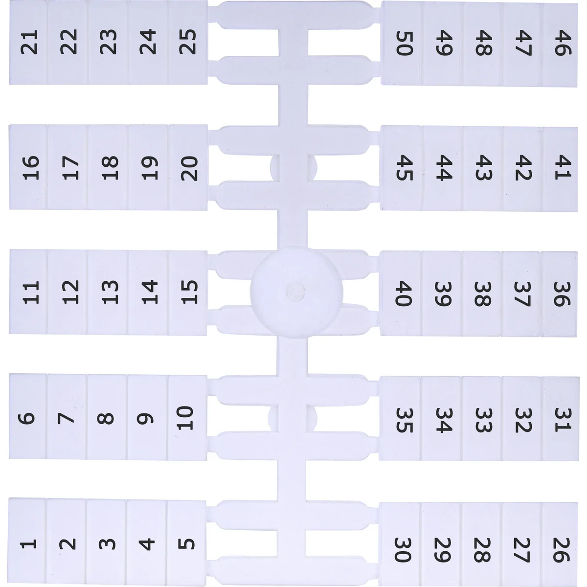 Para marcar conectores roscados VS... PA y soportes PK PA. Se fabrican con y sin impresión en dos tamaños: EO3 (4,8 x 5 mm) y EO4 (4,8 x 11 mm). Los marcadores en los paquetes están conectados entre sí y deben separarse durante la instalación en los conectores.