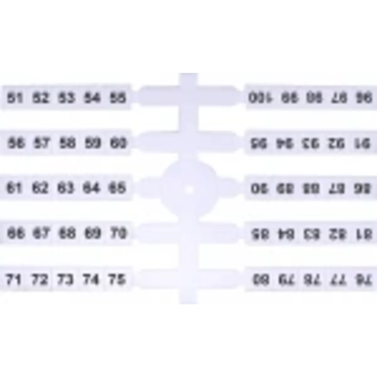 Para marcar conectores roscados VS... PA y soportes PK PA. Se fabrican con y sin impresión en dos tamaños: EO3 (4,8 x 5 mm) y EO4 (4,8 x 11 mm). Los marcadores en los paquetes están conectados entre sí y deben separarse durante la instalación en los conectores.