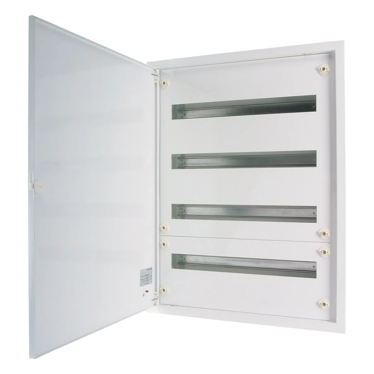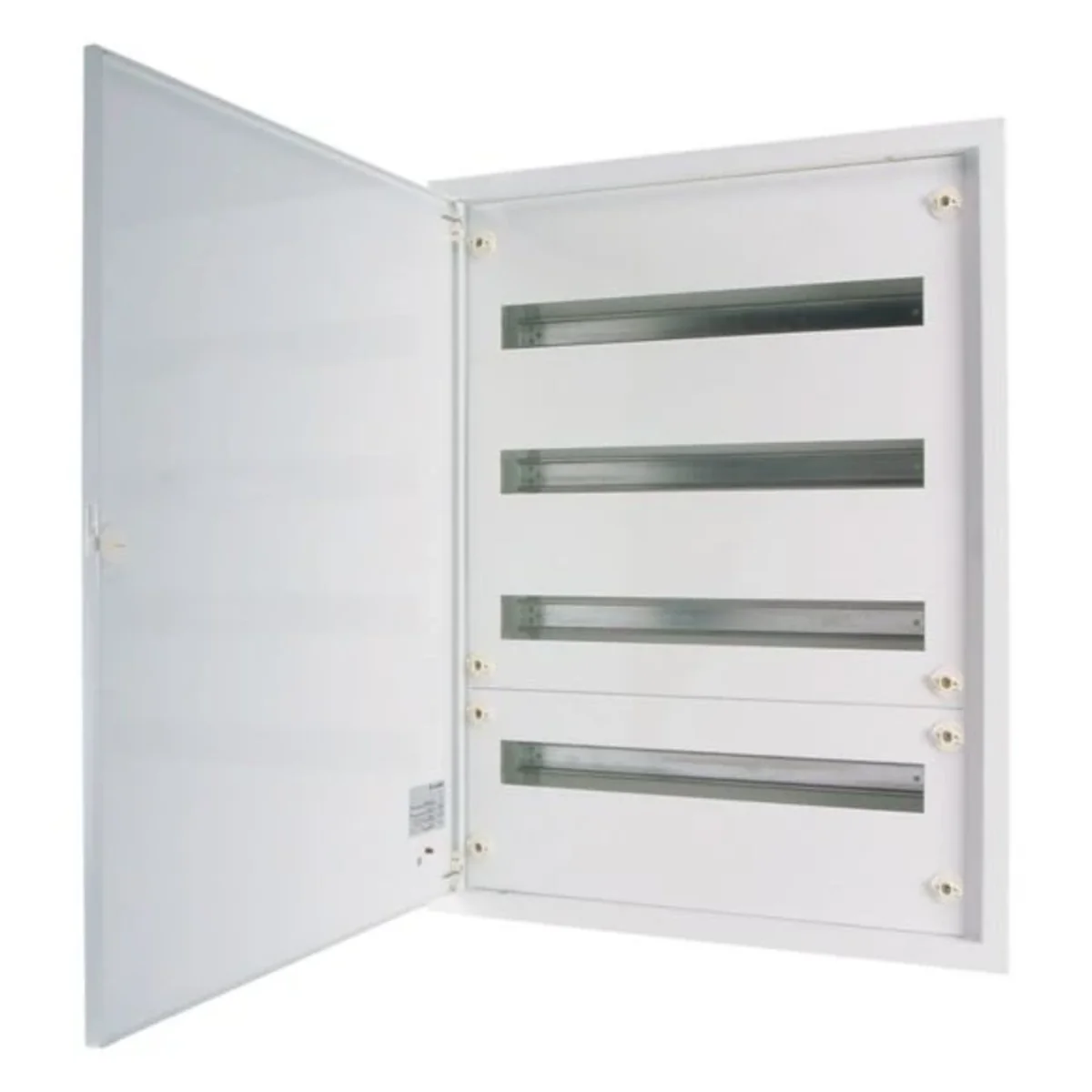 Cuadros de distribución empotrados con puertas metálicas, macizos • El cuadro completo incluye: puertas, carriles de soporte, tapas, bornes N y PE • 24 módulos seguidos