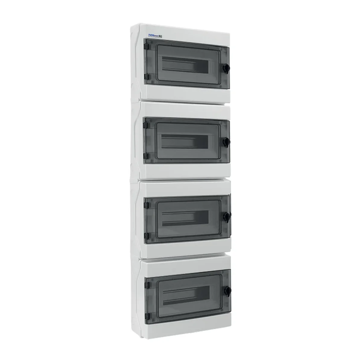 Cuadros herméticos de la serie RH "NEO" Están destinados a uso doméstico e industrial con posibilidad de instalar interruptores de sobrecorriente y dispositivos eléctricos. Están disponibles en versión de montaje en superficie y se utilizan ampliamente en instalaciones realizadas en el exterior de edificios.