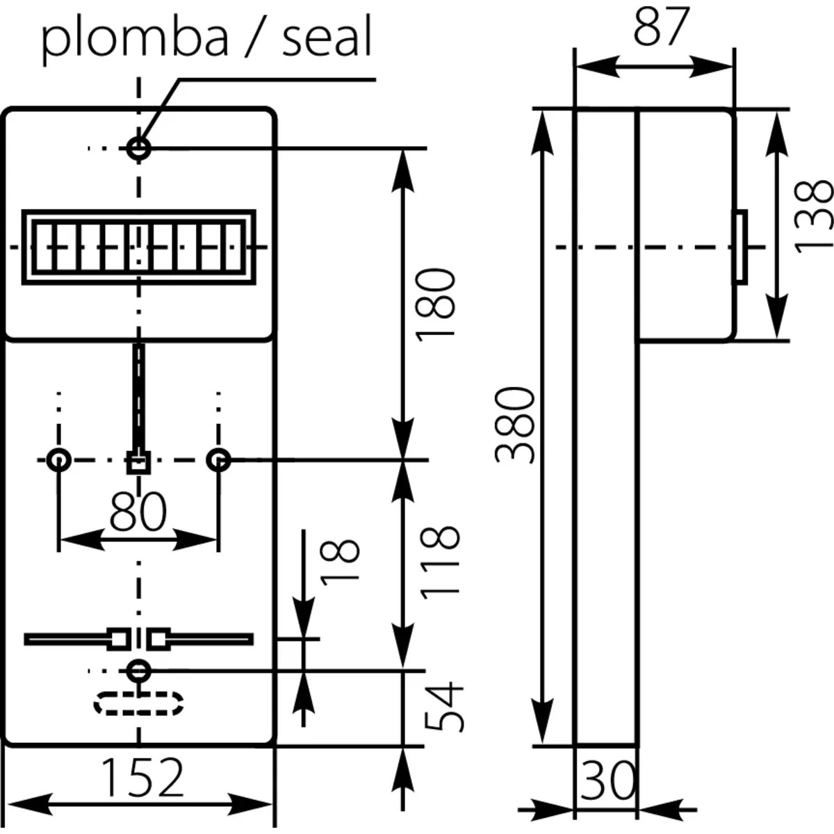 Los tableros de contadores tipo "TLR" cuentan con debilitamientos para dispositivos eléctricos de 1 a 9 módulos. Estos cuadros están equipados con soportes TH 35 que permiten una rápida instalación de diversos dispositivos adaptados para ser montados sobre soportes tipo EUROSZYNA, así como regletas con pletinas para la conexión de cables en carriles N y PE.