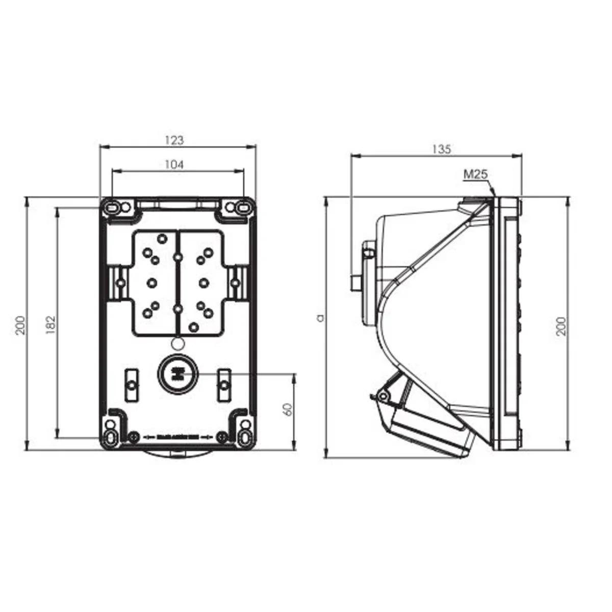 Toma con interruptor " COMBO-POL" IP44 16A 400V 3P+Z+N apagado LOP