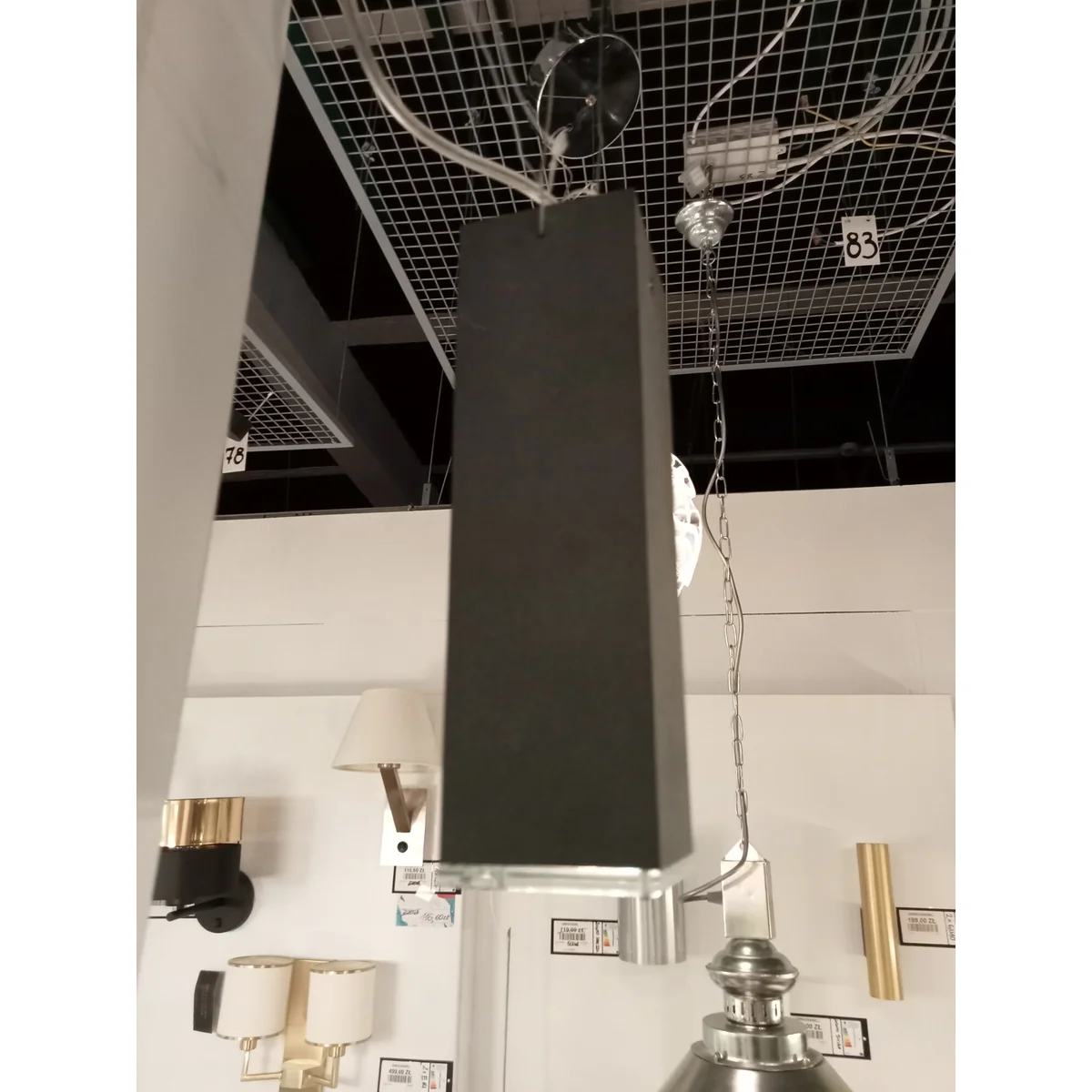 La lámpara tiene numerosos rayones visibles y manchas blancas. La cuerda de sujeción está ligeramente deshilachada.