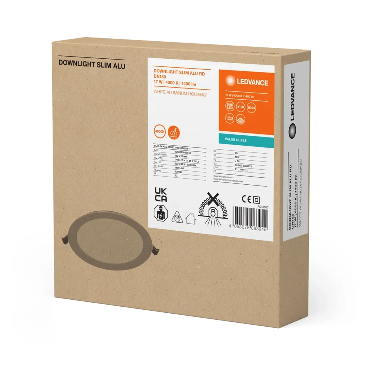 Aparato de iluminación planocon fuente de alimentación externa y carcasa de aluminio, de la serie DOWNLIGHT SLIM.
