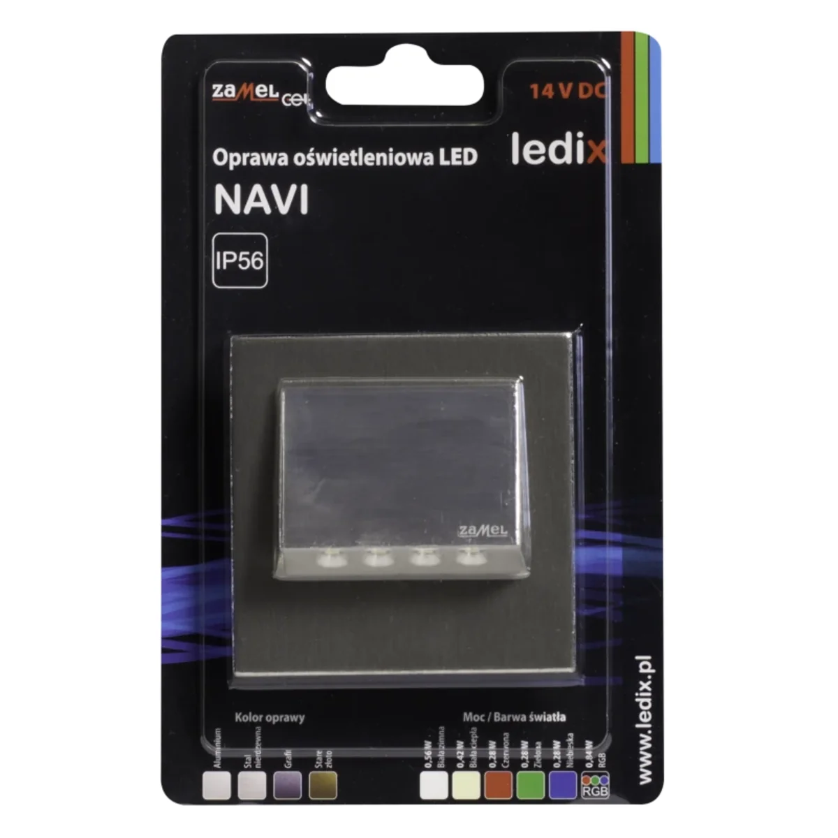 Luminaria LED NAVI con marco, color de luz blanco cálido. TIPO: 11-211-22. Color acero.