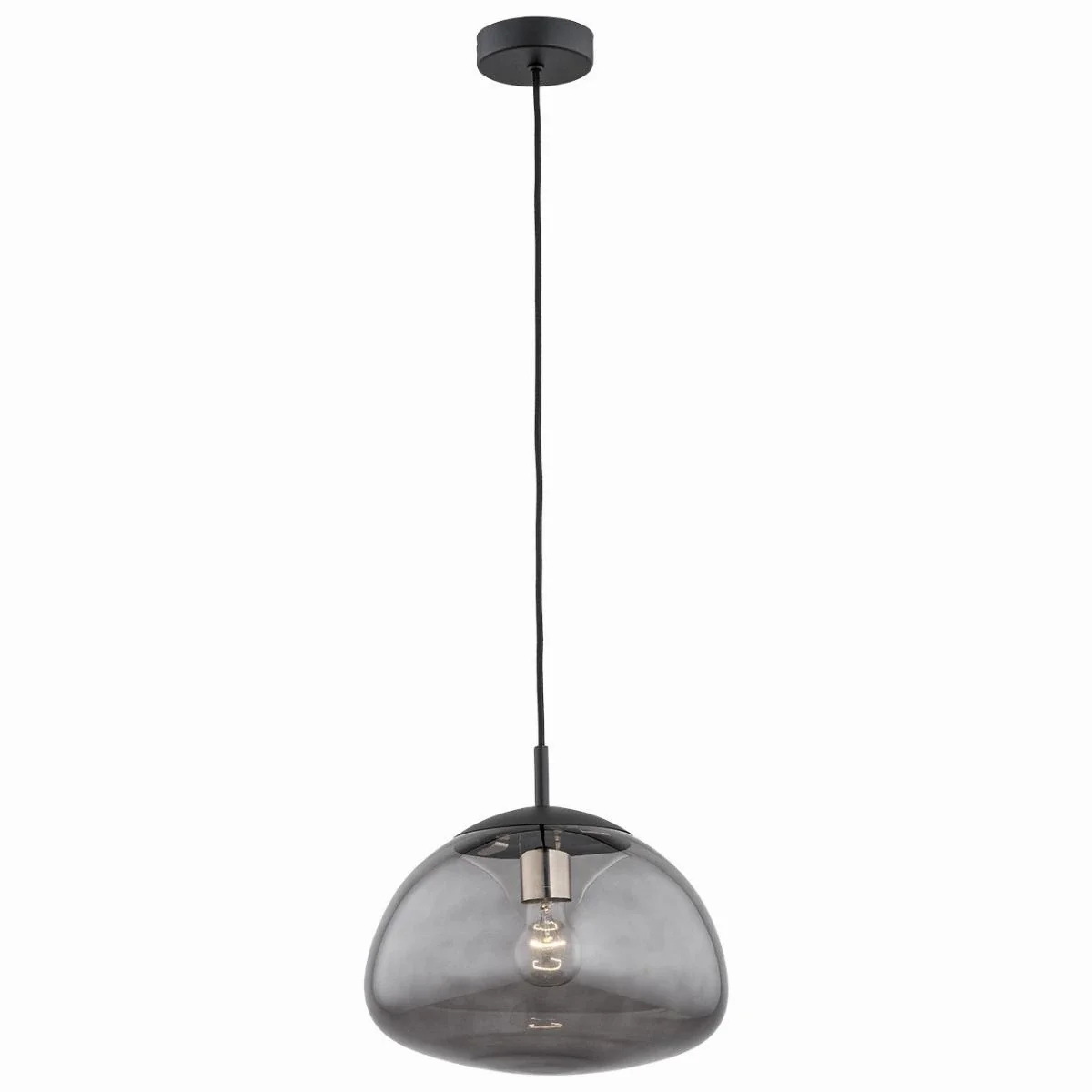 Una lámpara colgante TRINI única, extraordinaria y visualmente atractiva. La lámpara presentada tiene una pantalla de cristal de color ahumado y delicados accesorios negros y cuelga de un cable negro. Es una lámpara única, elegante y de tamaño compacto. Definitivamente proporcionará un efecto interesante en cualquier interior.