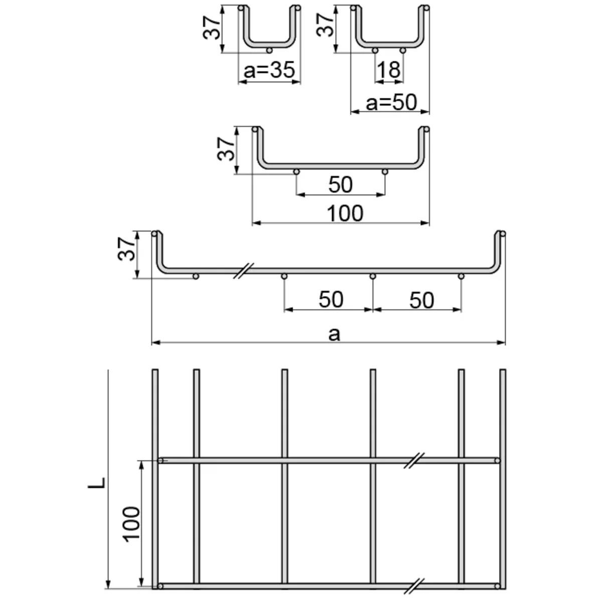 Canal galvanizado, ancho 300 mm, largo 3 m, alto 60 mm 940130