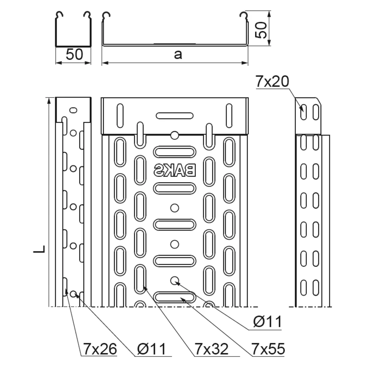 Bandeja portacables de acero perforado para ejecutar rutas de cable. Los canales con cortes en el lateral del canal se pueden conectar deslizándolos uno dentro del otro, sin utilizar conectores. Los canales sin recortes solo se pueden conectar mediante conectores.