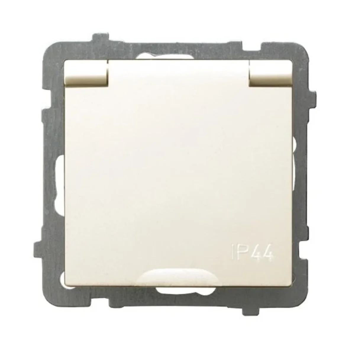 AS Toma de corriente antisalpicaduras con conexión a tierra color crudo, tapa color crudo GPH-1GZ/M/27/W