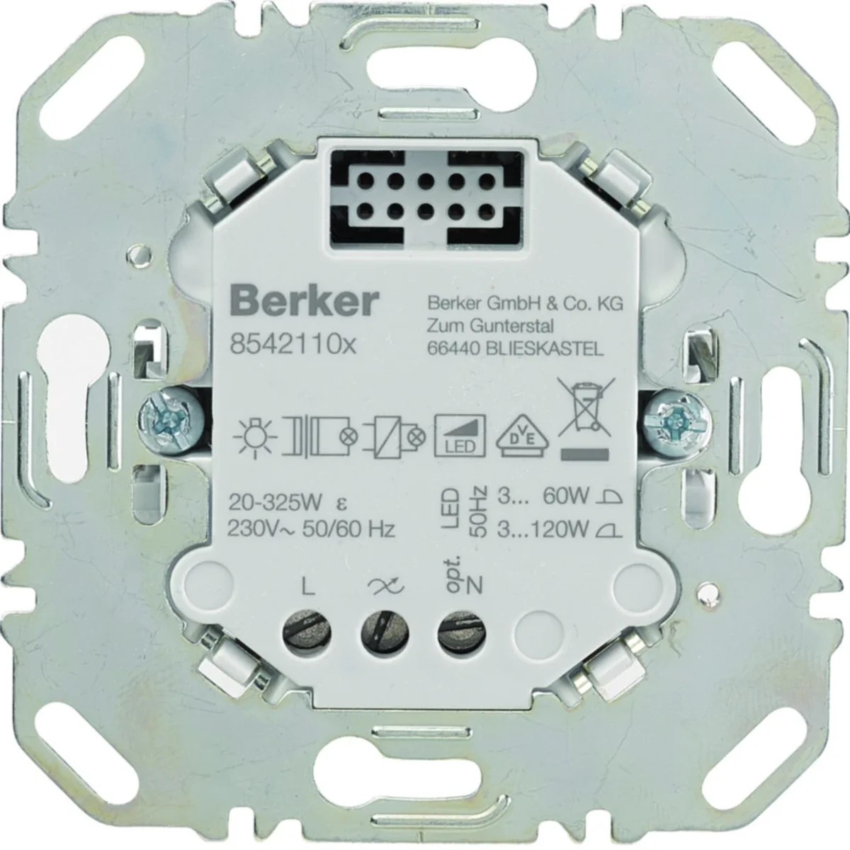 Mecanismo regulador de intensidad mediante pulsador de la serie one.platform. El número de catálogo del producto es 85421100.