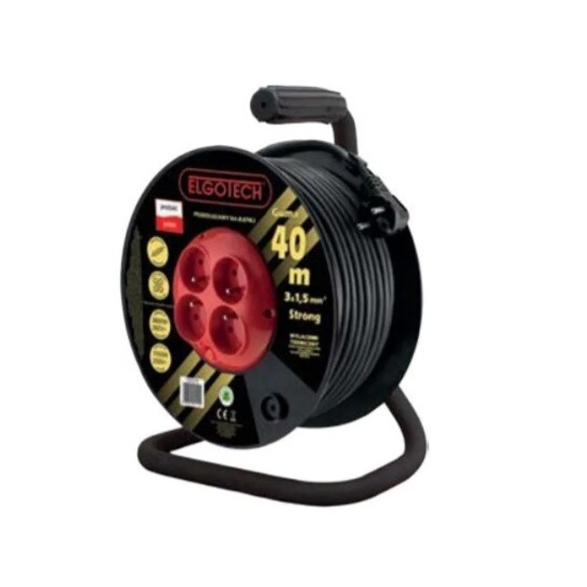 Cable alargador carrete STRONG 4 tomas c/u 40m H05RR-F 3x1,5 negro PZB-40-40G